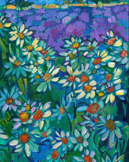 Erin devoted three years to perfecting the technology of 3D art printing in a quest to create a fine art print that captured her vibrant colors and reproduced the texture crucial to her artistic vision. The rhythms of texture in her luscious, impasto oil paintings communicate the movement and joy she finds in nature.