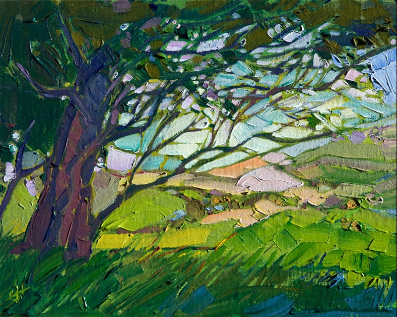 Erin devoted three years to perfecting the technology of 3D art printing in a quest to create a fine art print that captured her vibrant colors and reproduced the texture crucial to her artistic vision. The rhythms of texture in her luscious, impasto oil paintings communicate the movement and joy she finds in nature.