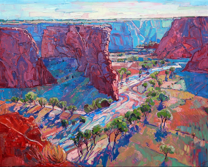 Erin Hanson's 3D Textured Replicas are almost indistinguishable from the original painting from a short distance away, capturing the texture of every brush stroke and weave of the canvas, as well as the vibrant colors of the original oil painting. These are the most realistic painting reproductions available with today's 3D scanning and printing technology.