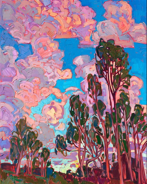 A representative of The Erin Hanson Gallery will arrange delivery of your Erin Hanson original oil painting. We will ensure someone is home to receive the artwork before shipping it out. Erin Hanson usually sells half of her original paintings while they are still drying on the dry rack. If your painting is still drying, we will let you know when it is expected to be fully dry and ready to ship (about six to eight weeks after the painting's completion.)