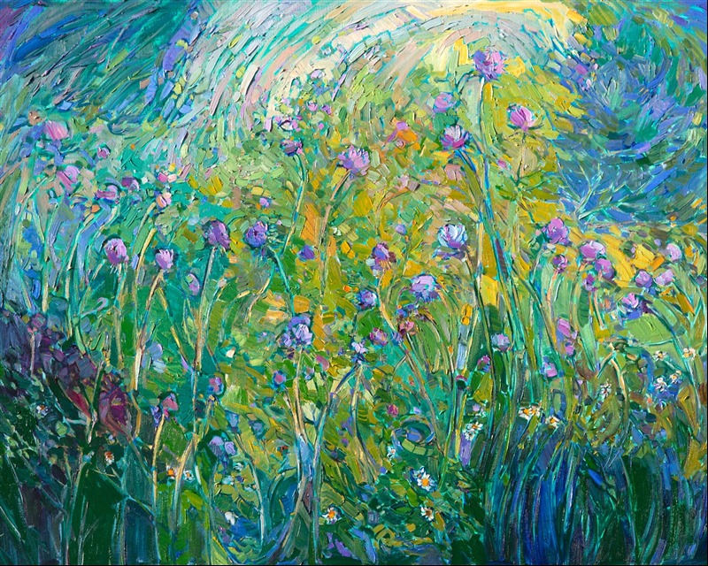 Erin devoted three years to perfecting the technology of 3D art printing in a quest to create a fine art print that captured her vibrant colors and reproduced the texture crucial to her artistic vision. The rhythms of texture in her luscious, impasto oil paintings communicate the movement and joy she finds in nature.