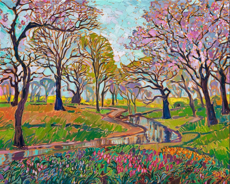 Erin devoted three years to perfecting the technology of 3D art printing in a quest to create a fine art print that captured her vibrant colors and reproduced the texture crucial to her artistic vision. The rhythms of texture in her luscious, impasto oil paintings communicate the movement and joy she finds in nature.