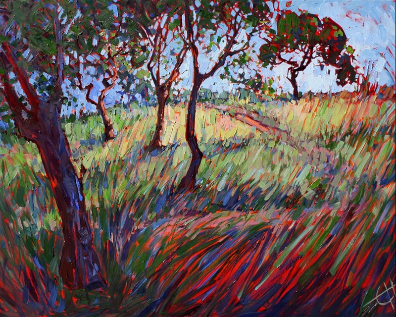 Erin devoted three years to perfecting the technology of 3D art printing in a quest to create a fine art print that captured her vibrant colors and reproduced the texture crucial to her artistic vision. The rhythms of texture in her luscious, impasto oil paintings communicate the movement and joy she finds in nature.