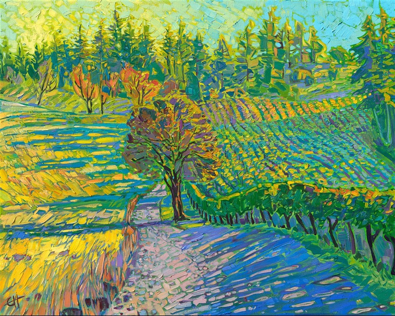 Please note: This painting will be hanging in a museum exhibition until November 5th, 2023. This piece is included in the show Erin Hanson: Color on the Vine at the Bone Creek Museum of Agrarian Art in Nebraska. You may purchase the painting now, but you will not receive the painting until after the show ends in November 2023.