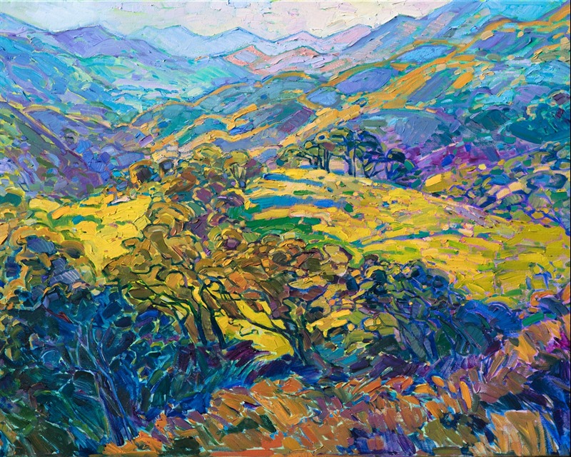 Erin devoted three years to perfecting the technology of 3D art printing in a quest to create a fine art print that captured her vibrant colors and reproduced the texture crucial to her artistic vision. The rhythms of texture in her luscious, impasto oil paintings communicate the movement and joy she finds in nature.
