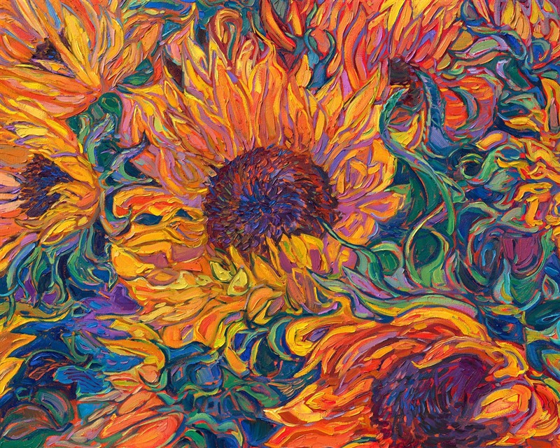 Erin Hanson's 3D Textured Replicas are almost indistinguishable from the original painting from a short distance away, capturing the texture of every brush stroke and weave of the canvas, as well as the vibrant colors of the original oil painting. These are the most realistic painting reproductions available with today's 3D scanning and printing technology.