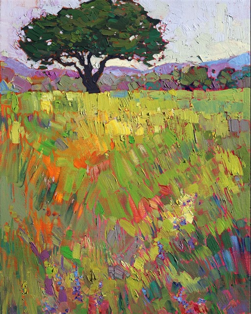 Style: "Open Impressionism" is a new style of painting developed by American artist Erin Hanson. The style is characterized by short, impasto brush strokes that are applied without layering, creating a mosaic or stained-glass appearance to the paintings. The paintings are created with a limited palette of colors, applied without blending or mixing upon the canvas, which adds a dimension of texture to each brush stroke. Inspired by classic impressionism, pointillism, and post-impressionism, Erin Hanson continues the tradition of impressionism into the modern day with her colorful and vivacious landscape paintings.