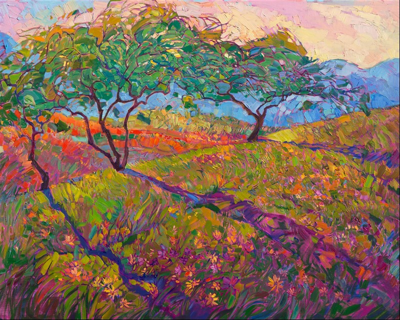 Erin devoted three years to perfecting the technology of 3D art printing in a quest to create a fine art print that captured her vibrant colors and reproduced the texture crucial to her artistic vision. The rhythms of texture in her luscious, impasto oil paintings communicate the movement and joy she finds in nature.