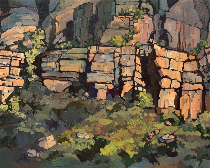 ERIN HANSON has been painting in oils since she was 8 years old. As a teenager, she apprenticed at a mural studio where she worked on 40-foot-long paintings while selling art commissions on the side. After being told it was too hard to make a living as an artist, she got her degree in Bioengineering from UC Berkeley. Afterward, Erin became a rock climber at Red Rock Canyon, Nevada. Inspired by the colorful scenery she was climbing, she decided to return to her love of painting and create one new painting every week.