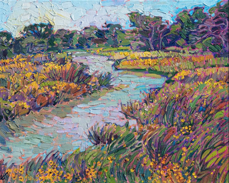 Erin devoted three years to perfecting the technology of 3D art printing in a quest to create a fine art print that captured her vibrant colors and reproduced the texture crucial to her artistic vision. The rhythms of texture in her luscious, impasto oil paintings communicate the movement and joy she finds in nature.