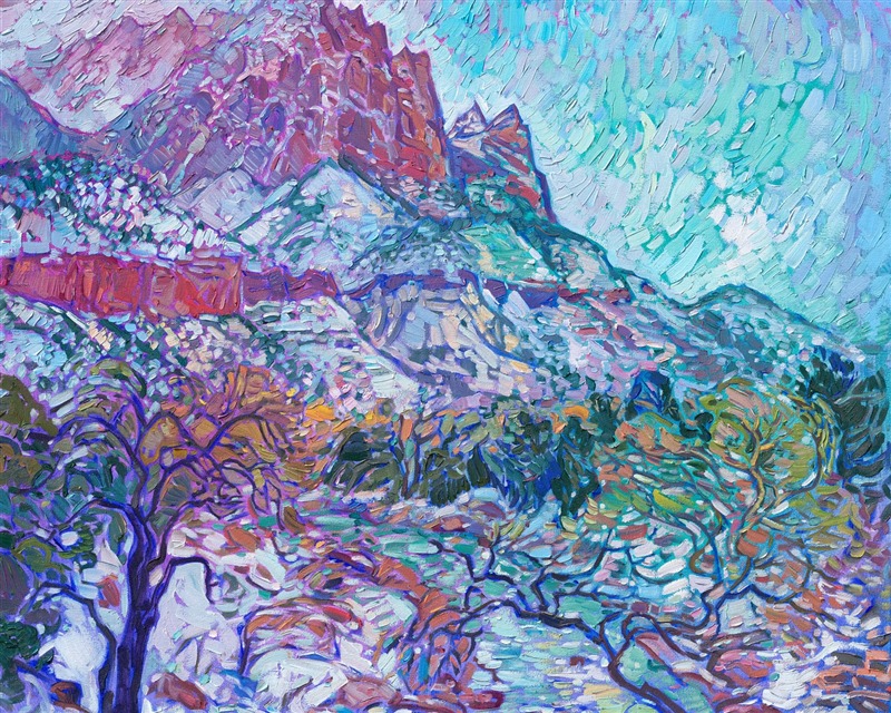 This painting was exhibited at Erin Hanson: Landscapes of the West solo museum exhibition at the Sears Art Museum in St. George, Utah.