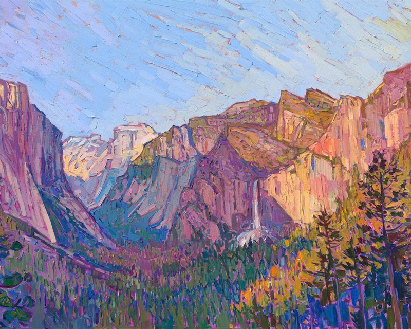 ERIN HANSON has been painting in oils since she was 8 years old. As a teenager, she apprenticed at a mural studio where she worked on 40-foot-long paintings while selling art commissions on the side. After being told it was too hard to make a living as an artist, she got her degree in Bioengineering from UC Berkeley. Afterward, Erin became a rock climber at Red Rock Canyon, Nevada. Inspired by the colorful scenery she was climbing, she decided to return to her love of painting and create one new painting every week.